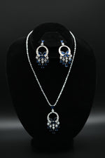The Sapphire Luna Jewelry Set is a breathtaking and artistic ensemble designed to evoke the mystical beauty of a moonlit night. This captivating set, featuring a necklace and matching earrings, showcases a stunning interplay of deep blue gemstones and brilliant clear crystals, all meticulously arranged in a unique and elegant circular motif. The design is both celestial and modern, making it a truly exceptional statement piece.